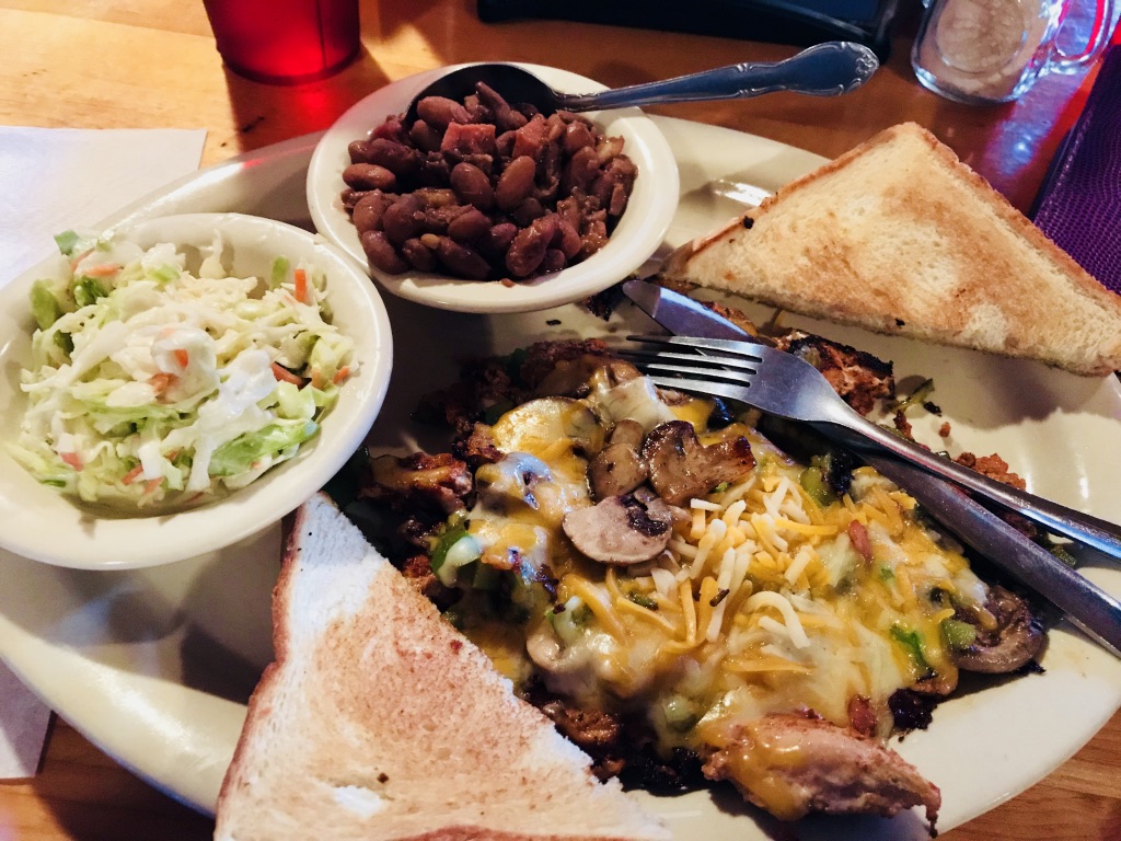 Clanton’s café 06:45PM: It’s dinner time!! The menu was new to me, I had no idea on what to order. Jim came to the rescue, he suggested that I should try the chicken fried steak which is Clanton’s most famous dish. I was also introduced to a new item called ‘calf fries’, I had no idea what it was and everyone at the table started laughing! Thanks to Jim, I learned what it is, now I was skeptical to try it. With all my might, I tasted it…. And it was GOOD!!