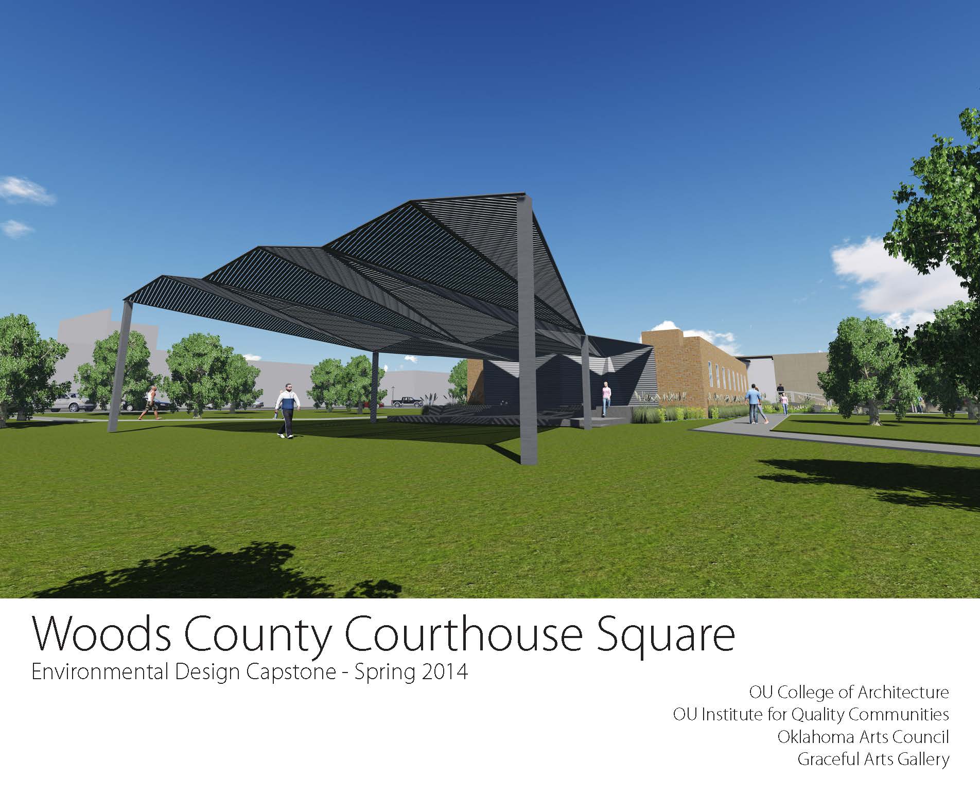 This course will focus on taking a recently completed “Cultural District Development Plan” for the City of Alva, Oklahoma, and providing design assistance for some of the key recommendations made in the plan. Namely, the students will address an existing performance stage located on the Woods County Courthouse Square and will make recommendations for improving the functionality of the stage for existing and proposed events. Also, the group will look at ways to better connect the 5-block stretch of College Avenue that connects the Woods County Courthouse Square with the Northwestern Oklahoma State University Campus. Research work will include both using archives on The University of Oklahoma campus in Norman, Oklahoma, as well as field work in downtown Alva, Oklahoma.